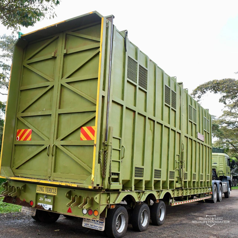 2. Two large 5th wheel trailers with large crates for transporting injured elephants, rhinos, and other large animals.